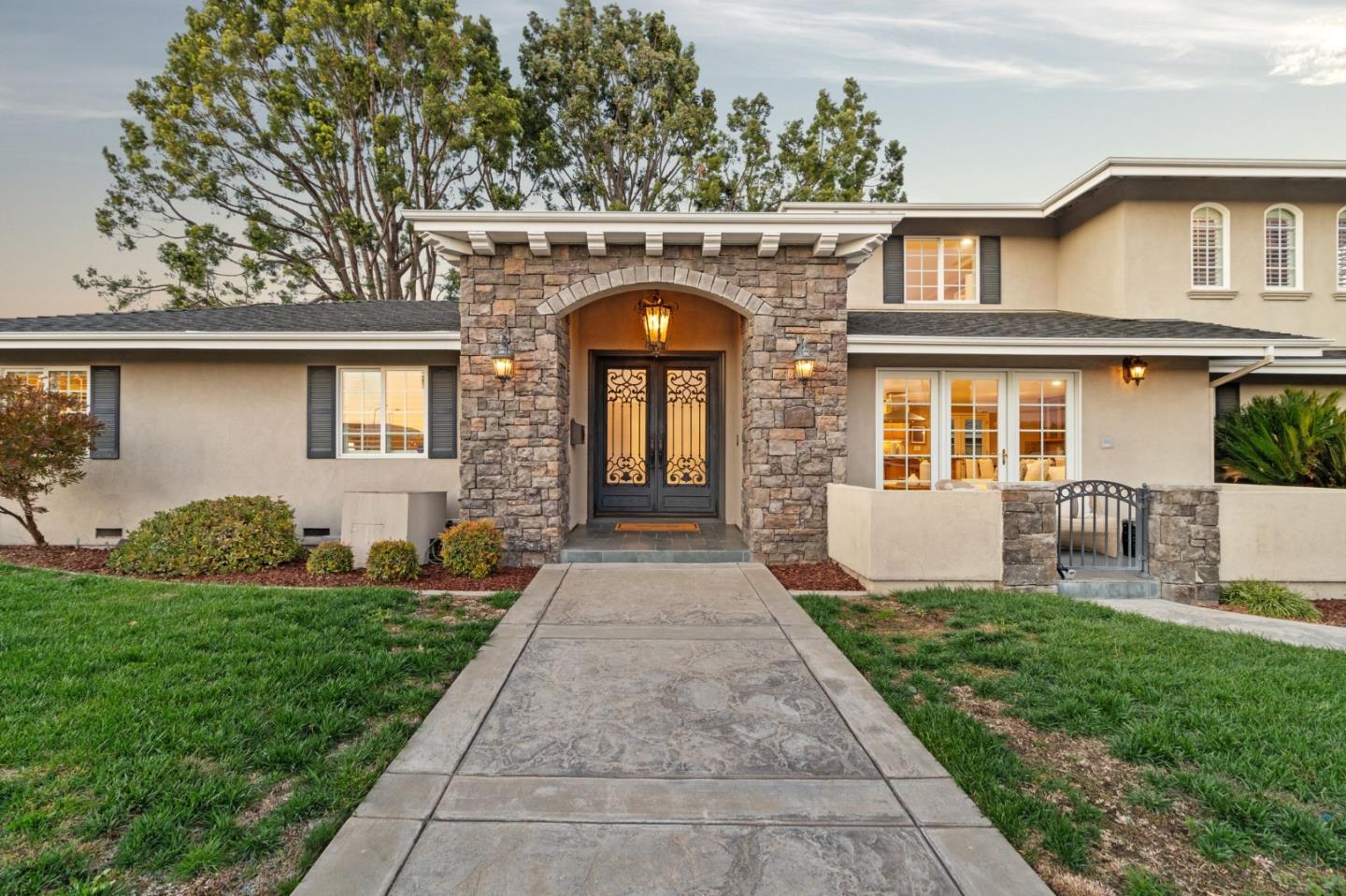 First time on the market after decades in the same family, remodeled by De Mattei Construction, voted 2024 & 2023 Best New Home Builder in Silicon Valley, with no detail ignored in this uncommonly palatial retreat on an exceptionally wide 0.22 acre double lot in the heart of Santa Clara. Walk up to the stately entry and step through the oversized iron entry doors and you'll immediately sense this home is different and special. With a sprawling floor plan featuring newly-installed modern hardwood flooring throughout, an expansive great room with upscale French doors leading to seating areas both front and back, an oversized chefs kitchen with high-end built-in Monogram appliances, a formal living room with coffered ceilings and gas burning fireplace, three ground floor bedrooms and bathrooms (including a large en suite ideal for multigenerational living), and a second colossal master suite encompassing the entire top floor, the interior lives up to the expectations set by the home's prominent exterior facade with stone accents. Wide backyard, with a patio beneath an imposing canopy of mature trees, offers a surplus of outdoor space (not to mention, affordable Santa Clara utilities), just minutes from the South Bay's largest employers.