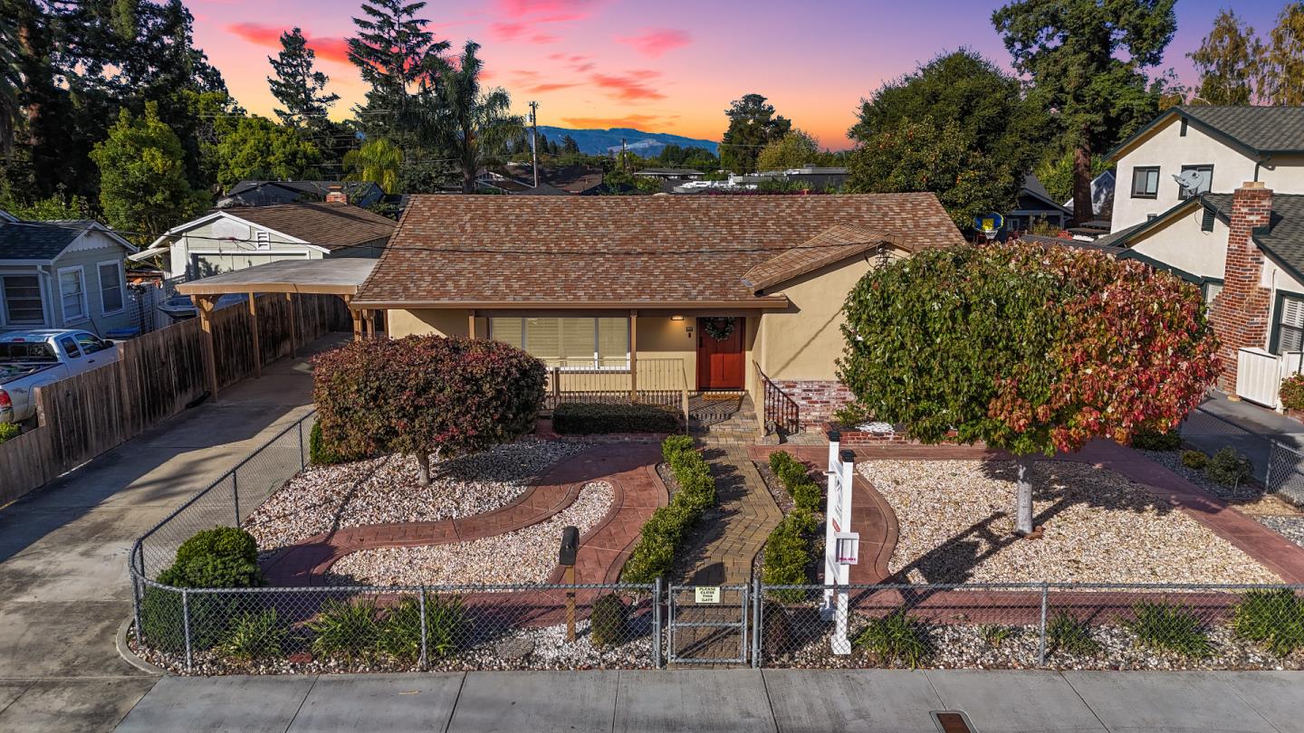 Welcome to this charming bungalow near Santana Row, ideally situated for Silicon Valley commuters and offering endless potential. Set on an expansive 8,000 sq. ft. lot, this home invites personalization and future expansion. Inside, enjoy recently updated interiors with LVP flooring and a cozy, functional layout. The bright kitchen features a cooktop, electric oven, Formica countertops, dishwasher, and more. An open dining area flows into the living room, enhancing the homes spacious feel. Outdoors, a covered deck is perfect for dining and entertaining, while the converted detached garage serves as a versatile workshop, home office, or guest bedroom. Additional amenities include central AC and heating, energy-efficient double-pane windows, a tankless water heater, and a smart thermostat. A carport and extended driveway offer ample parking, and the property boasts extensive storage with an outbuilding, shed, and workshop. Located in the Campbell Union Elementary School District, this San Jose gem combines comfort, convenience, and opportunity in a highly desirable location.