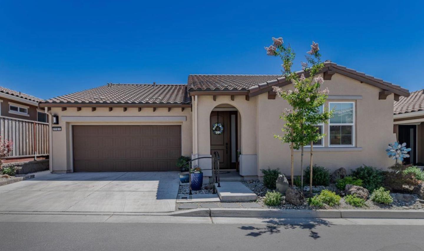 Affordable Active Adult 55+ Living! This turn-key, single-family home in gated Twin Oaks has 3 bedrooms and 2 full bathrooms with an abundance of natural light. Less than 3 years old, this home features upgrades galore, including stainless steel appliances, an oversized center island with quartz countertops, a modern fireplace, luxury vinyl flooring, tankless water heater, instant hot water, and owned solar panels adding significant savings. The beautifully landscaped, low-maintenance yard includes a covered patio with BBQ hookups perfect for entertaining. Twin Oaks residents enjoy access to the Cannery Club offering a concierge service, a full kitchen for cooking classes, pool, spa, bocce & pickleball, exercise rooms & fitness classes, wine tasting, and a variety of social activities and excursions. Located amidst sprawling foothills, this home is just minutes from dining, shopping, medical facilities, and two beautiful golf courses. This amazing opportunity is under an hour from the Bay Area and a short 30 minute drive to Monterey. All appliances, RING doorbell, and the TV are included. Combining comfort, convenience, and luxury, this home is a must see!