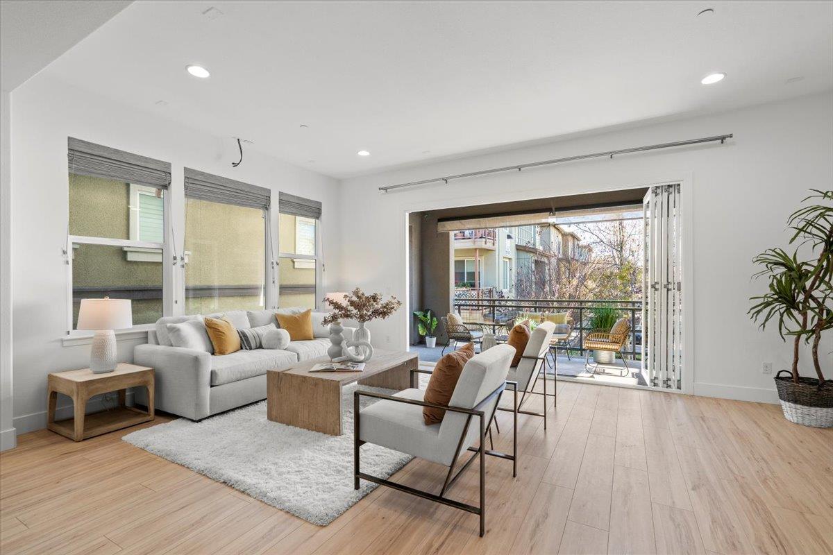 This stunning home is designed for contemporary lifestyle, with the open-concept layout, soaring high ceilings and abundant natural light throughout. The gourmet kitchen is a chefs dream, featuring quartz countertops, stainless steel appliances, and ample storage. Upstairs, the luxurious master suite offers a spa-like bathroom with dual sinks, a freestanding tub, a stall shower, and an expansive walk-in closet. An additional suite next to the master ensures privacy and convenience for family members. Downstairs, a private living suite with a spacious den offers versatility-perfect as an office, guest space, or entertainment area. The home is equipped with a triple-zone heating and cooling system, elegant flooring, and fresh interior paint. Outdoor living shines with a large patio and balcony, ideal for relaxing or entertaining guests. Community amenities include a BBQ area, playground, and serene park spaces for leisurely enjoyment. Perfectly located within walking distance of the new Mabel Mattos Elementary School and surrounded by premier shopping and dining destinations. Commuters will love the easy access to highways 880, 680, and 237, along with proximity to major tech companies. Do not miss the opportunity to make it yours!