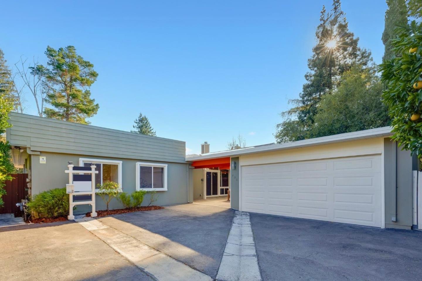 Nestled at the end of a private driveway, this thoughtfully designed 4-bedroom, 2-bath Eichler- inspired home offers 1,767 square feet of refined living space. A welcoming front atrium sets the stage for seamless indoor-outdoor living perfect for al fresco dining & social gatherings. Inside, vaulted tongue-&-groove ceilings & floor-to-ceiling windows bathe the rooms in natural light. The inviting living room features a cozy fireplace, while hardwood floors, granite countertops, & strategically placed skylights add warmth & modern style. The well-appointed kitchen boasts stainless steel appliances & a convenient walk-in pantry; sliding doors open to a pergola, extending your living space outdoors. The primary suite offers a peaceful retreat, complete with sliding doors to the yard, a spacious walk-in closet, & updated LED track lighting. The 7,560-square-foot lot showcases a spacious yard with vibrant roses, & fruit-bearing trees. Located moments from the tranquility of Cornelis Bol Park, the entertainment of CineArts Square, & the culinary scene of California Ave & within easy reach of Stanford University, Stanford Shopping Center, & major tech campuses. Top Palo Alto Public schools.
