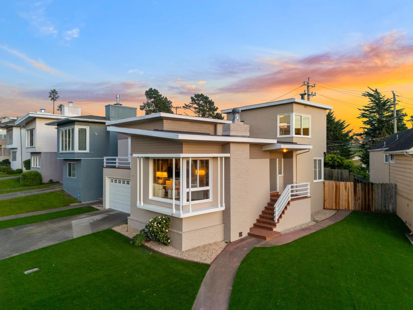Welcome to this timeless Henry Doelger-built gem,perfectly situated on a precious corner lot in the highly sought-after Westlake neighborhood.The lot is in a flat area between the San Francisco hills and Daly City hills, allowing you to enjoy a unique setting that provides beautiful,sweeping views and a sense of charm and tranquility.The living area offers 1,770 sqft, including a top level primary suite with Olympic Club Golf Course views on a generous 5,414 sqft lot.Recent upgrades include new interior and exterior paint,refinished hardwood floors,and new light fixtures throughout,seamlessly blending classic character with modern finishes.The spacious living room, complete with a cozy fireplace and scenic views,is perfect for relaxing or entertaining.The homes thoughtful layout ensures comfort and functionality for every occasion.A highlight of this property is the large garage, brimming with potential to expand,create a 4th bedroom suite, workshop,or design additional living space tailored to your needs.Ideally located,this Westlake treasure offers proximity to shopping,dining,and recreation,along with easy access to San Francisco and the Peninsula.Dont miss the chance to own this corner-lot beauty with a unique blend of architectural history,modern updates,and stunning views.