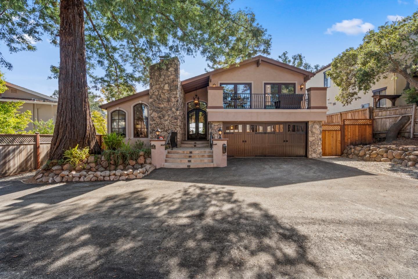 Tucked away on a peaceful cul-de-sac in one of Belmont's most coveted neighborhoods, this custom-built estate offers unmatched privacy, elegance, and luxury. A long, private driveway leads to this architectural masterpiece, where soaring 13-foot cathedral ceilings, hand-scraped Teak hardwood floors, exquisite crown molding and imported Italian Meroku Mahogany French doors throughout set the tone for refined living. The chef's kitchen boasts custom cherry cabinetry, Bordeaux granite countertops, and high-end appliances, seamlessly connecting to an outdoor patio. The lower-level family room features a wood-burning fireplace, hand-carved Italian limestone mantel, built-in surround sound, and hidden LED theater lighting. Upstairs, the sumptuous primary suite offers a spa-inspired bath with heated floors, a claw-foot air-jet tub, an oversized stall shower and dual walk-in closets. Two additional bedrooms share a private balcony and a beautifully designed full hall bath. The expansive backyard includes a serene fountain, lush lawn, and covered patio with built-in speakers and lighting. Located just minutes from highly acclaimed Belmont schools, dining, shopping, and parks, and easy access to major commute routes. This home offers the perfect blend of luxury and modern convenience.