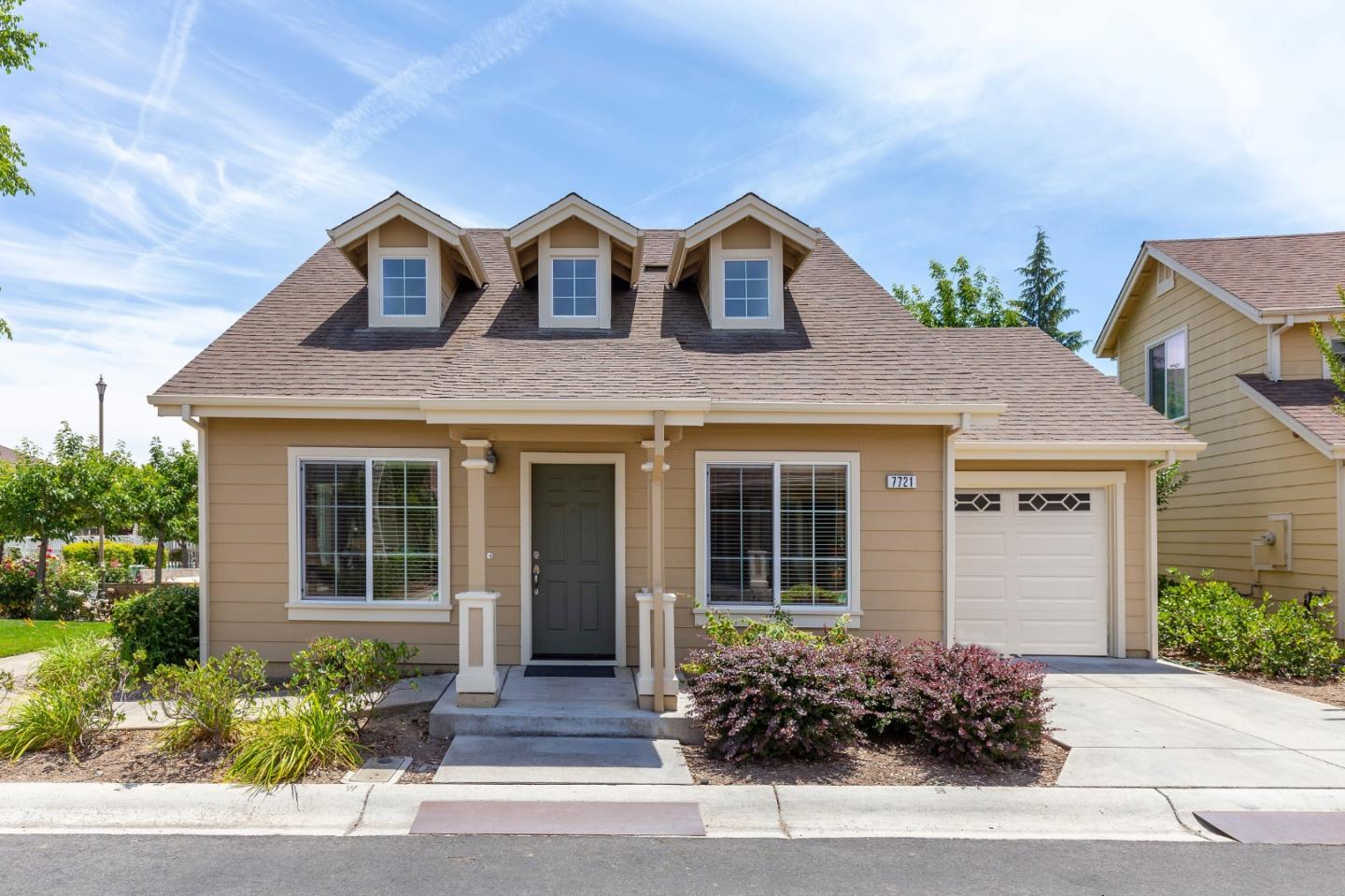 Welcome home to 7721 Isabella Way, Gilroy! This home is located in the gated community of Village Green and features a fantastic open floor plan with approx. 1,100 sq. ft., 2 bedrooms and 2 baths. Positioned in the perfect setting, adjacent to a small park with a tranquil fountain and benches & easy walk to the pool and clubhouse. The bright great room features a vaulted ceiling with skylights and wood floors throughout the bottom floor. The kitchen includes granite counters, new stainless-steel appliances, new faucet, new garbage disposal & spacious pantry. The primary suite offers a sliding glass door to your fenced patio plus double vanity and stall shower. The upstairs bedroom is adjacent to full bath which includes a shower over tub. Both bathrooms include double vanities with granite countertops and shower surrounds, tile floors and new faucets as well as new ceiling fans in the bedrooms. The new washer & dryer have been installed in the attached 1 car garage and stay with the home. You will also find a new garage door and new belt driven garage door opener. The Cottages at Village Green is the perfect gated senior community with parks, pool, spa, gym and recreation room with easy access to shopping, restaurants and more! At least one homeowner must be 62 years or older.