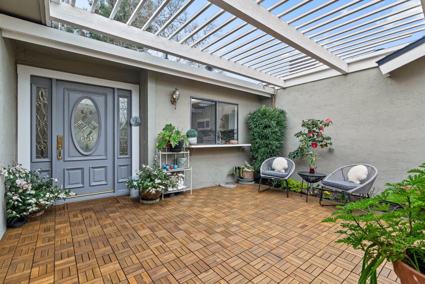 Nestled in the exclusive gated Sunrise Almaden community, this beautiful home blends comfort and style. A private courtyard greets you at the entrance, leading to a well-equipped kitchen with modern appliances and ample cabinet space. The open dining and family rooms are filled with natural light from vaulted ceilings and skylights, while a cozy brick fireplace adds warmth. A tranquil atrium offers serenity in the center of the home. The spacious primary bedroom features a luxurious ensuite, and the second room is designed with a built-in desk and shelves for productivity. A bright third room includes a large closet and sliding doors to a patio. The home also offers a 2-car garage and the privacy of a single-family residence. Recently updated with laminate flooring, fresh paint, and modern features, it's both stylish and functional. The community includes a tennis court, pickleball, basketball, swimming pool and hot tub. Top-rated Almaden Valley schools, including Leland High School, are nearby, as well as Almaden Lake, Trails, Community Center, Public Library and highways 85/87. The HOA covers exterior paint, roof, plumbing, and green space. Enjoy relaxed living in this exceptional home!