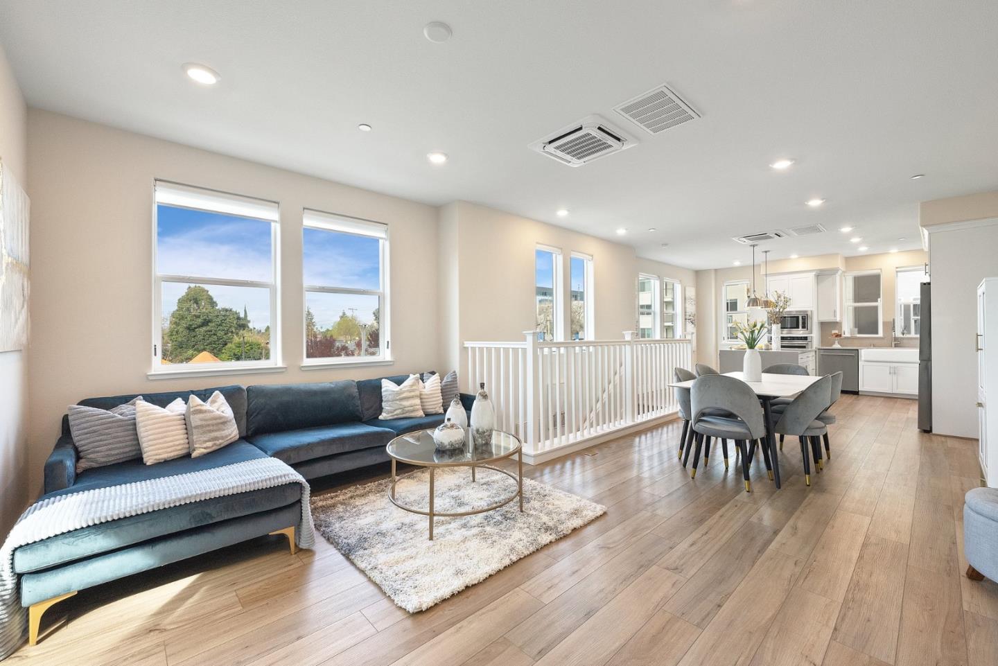 OPEN SAT & SUN! Built in 2022, Modern 2-story home offering rare, unobstructed park view. Its highly sought-after floor plan, with all living spaces on one level (now sold out in the complex), features additional expansive windows and soaring ceilings that fill the home with natural light. Designer upgrades throughout seamlessly blend luxurious finishes with high-end enhancements. The gourmet kitchen, equipped with top-tier appliances and a spacious island, is perfect for both cooking and entertaining. Elegant bathrooms, featuring premium stone countertops and modern fixtures, create a spa-like retreat for ultimate relaxation. Enjoy the outdoors from either of the two private balconiesone off the living room and the other off the primary suite. The expansive primary suite also boasts a custom wall of built-in furniture.Ideally located just steps from the vibrant Santana Row and Westfield Valley Fair, you'll have an abundance of shopping, dining, and entertainment options right at your doorstep, with easy access to major freeways (Hwy 280 and 17). Designed with sustainability in mind, featuring rented solar panels, smart video doorbell, smart garage door opener, and a pre-wired communication box, Experience the pinnacle of luxury, comfort, and lifestyle in this remarkable home.