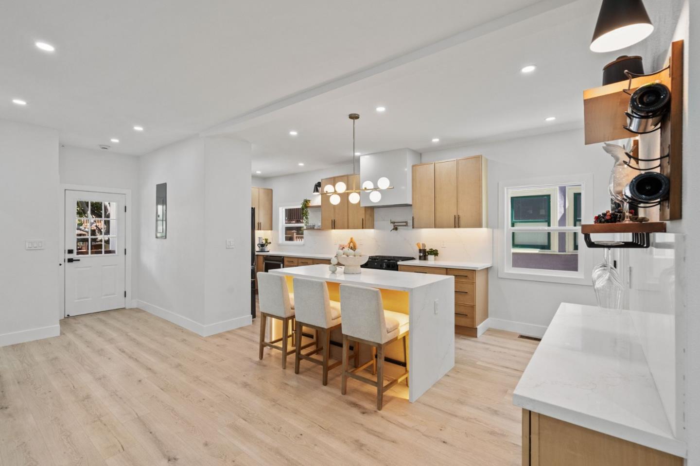 Welcome to Woolsey St! An aesthetically updated 4-bedroom, 3-bathroom home in the sought-after South Berkeley neighborhood. The inviting living area features recessed lighting and an elegant fireplace, creating a warm ambiance. The modern kitchen boasts stainless steel appliances, a spacious island with contemporary lighting, quartz countertops, soft-close cabinetry, and a sleek quartz backsplash. Upstairs, a convenient bar area adds versatility. Designer bathrooms include LED mirrors and high-end finishes. The low-maintenance backyard, complete with a swing set, offers a peaceful and private space to relax or unwind. Smart home features like a Nest Thermostat and Doorbell add modern convenience. Ideally located near Ashby BART Station, Berkeley Bowl, San Pablo Park, top-rated schools, and with easy access to major highways. This home is waiting for you!