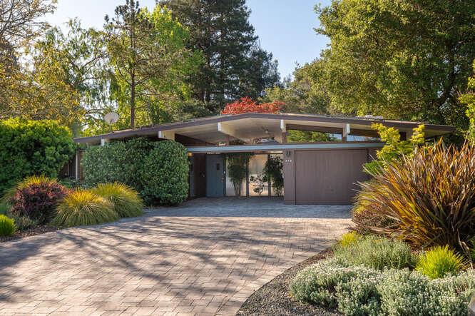 Please note, homes on the Stanford Campus are available exclusively to eligible Stanford faculty. Located on a cul-de-sac in the heart of the Stanford campus, this classic 1959 Joseph Eichler home showcases iconic mid-century design elements combined with thoughtful updates. Signature paneled ceilings, globe pendants, and walls of glass define the architectural style, while remodeled baths and a stylish kitchen with Corian counters add modern functionality. Beginning with a signature courtyard around which the home revolves, the floor plan includes 4 bedrooms and 3 baths, with the flexibility of a separate apartment ideal for extended family or rental use. This private suite includes a full kitchen, living area, remodeled bath, and both interior and private exterior access. At the heart of the home, open living spaces wrap around the central courtyard, creating an ideal layout for everyday living and an indoor/outdoor connection. At the rear, an extra-deep yard offers exceptional privacy with lawn, a large spa, and a separately fenced area that adjoins the apartment. A carport with EV charging and solar electricity add sustainable features, plus there is an attached garage. Expansive and very private rear yard with lawn.