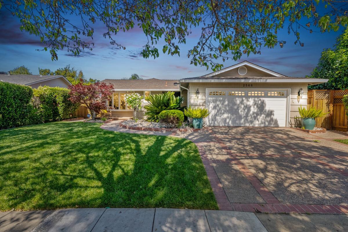 Welcome to 2566 Aragon Way, a rare opportunity in Willow Glen. This 3 bedroom, 2.5 bathroom home offers 1,805 sq ft of living space on an open 6,798 sq ft lot. Featuring vaulted ceilings, dual-pane windows, recessed lighting, and formal living and dining areas. The kitchen is updated with granite countertops and GE stainless steel appliances, opening to a family room with a brick fireplace. The primary suite offers dual closets and an ensuite bath. Enjoy a private backyard with turf, brick patio, retractable awning, and a large side yard with a Tuff Shed. The home is complete with central heat and AC, a 2-car garage with storage and laundry, and a beautifully landscaped front yard. Set on a quiet, tree-lined street near parks, shopping, and major freeways is a unique opportunity to own a legacy property in Willow Glen. Do not miss this rare chance to own a home in one of the most desirable neighborhoods in all of Willow Glen/Cambrian.
