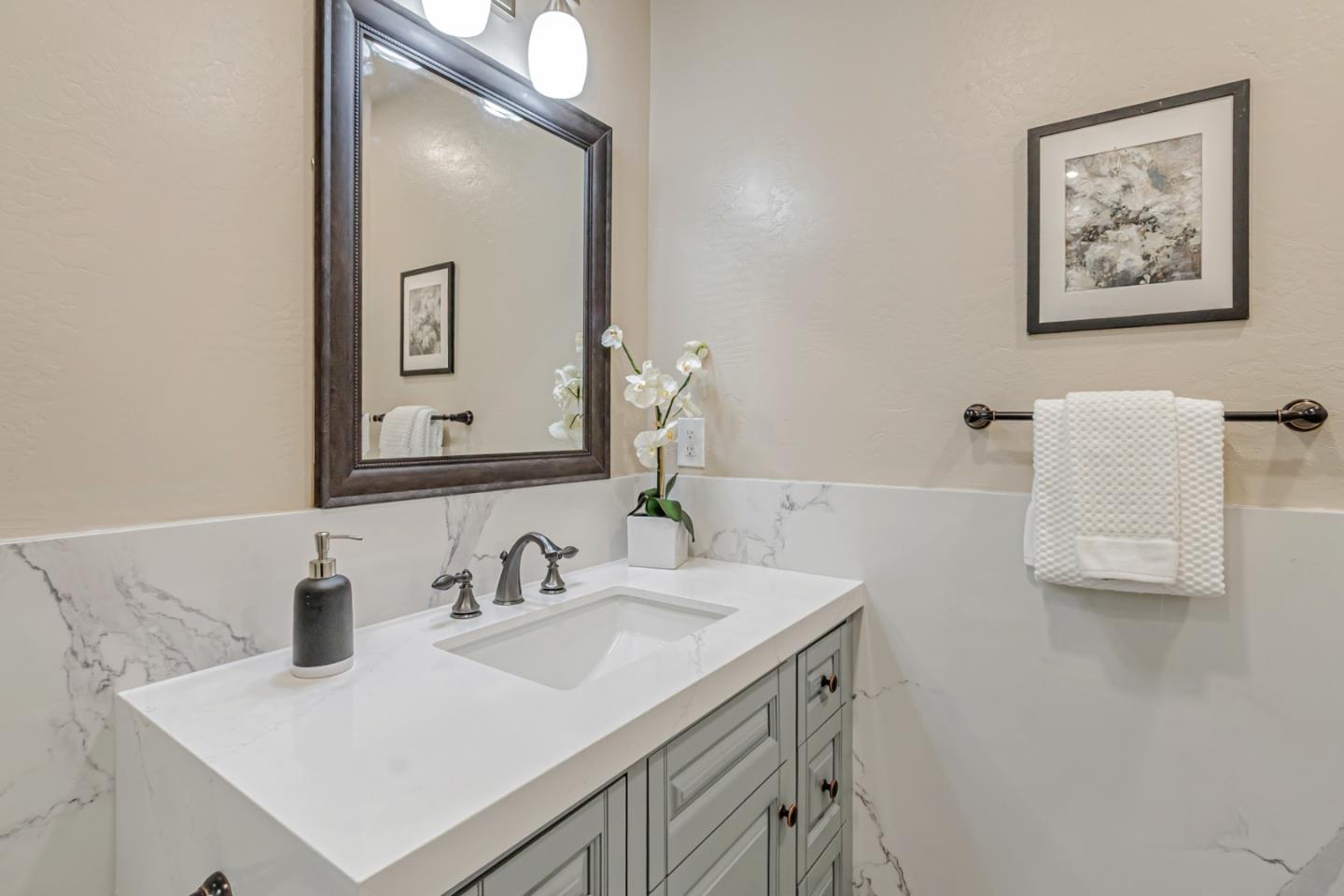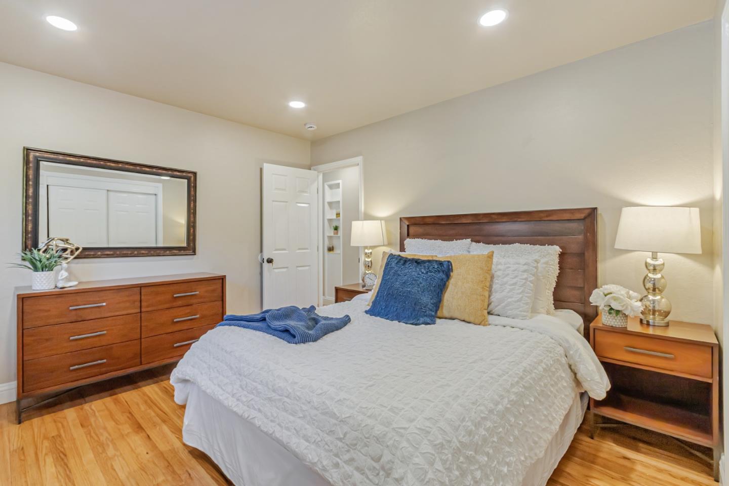 Welcome to your future home at the base of the foothills in San Joses Berryessa District. The household on the go is going to love the open kitchen concept featuring new cabinets, new free-standing stainless steel Whirlpool gas range and oven, new Bosch dishwasher, all set in a custom designed quartz island countertop, breakfast bar, and backsplash. Cabinets have flush mounted doors and hidden hinges. Central to the kitchen is the living and dining areas with hardwood floors, attractive stone encased fireplace mantle and built in with recessed lighting. Through a sliding glass door is a separate family room, providing ample space for relaxation and entertainment. Year round comfort is assured with dual paned windows central air conditioning and heat. The newly remodeled hall bathroom features porcelain stone floor, new vanity and immaculate new stone enclosure with shower over tub. The primary suite has a newly remodeled bathroom with white porcelain floor, spacious shower enclosure, quartz walls and mosaic tile floor. New vanity and Kohler fixture complete the look. A sunny private backyard is perfect for the gardener and allows for all day sun. Fully finished 2 car garage with epoxy floor and storage cabinets. Easy access to shopping and schools.