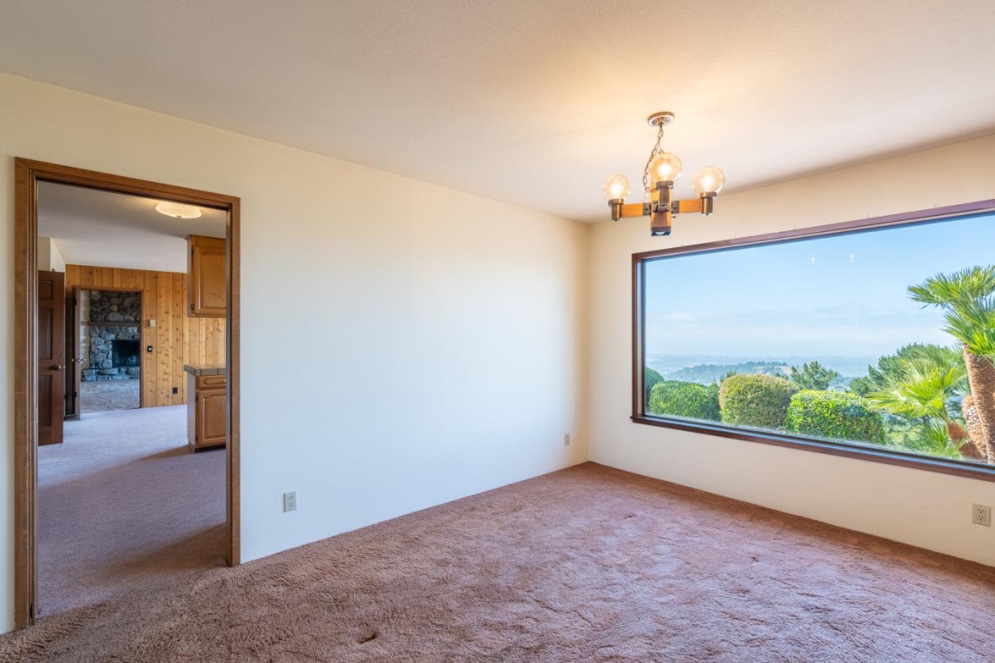 Boasting 360 degree views of Monterey Bay and Carmel Valley, this single-level home captures the very essence of California living. From sunrise over the valley to sunset over the sea, the vistas are nothing short of breathtaking. This single level three bedrooms and two bathrooms ranch-style home features a spacious living room centered around a large stone fireplace crafted from local Cachagua hillside rock. Just off the living room, a floor-to-ceiling window-lined bar room with built-in seating offers a front-row seat to sunsets. The large kitchen with dining area flows into a formal dining room, while the oversized primary suite provides space and privacy. From the back deck take in panoramic ocean views from your private pool and cocktail hot tub, built from local Carmel River stone. Drink your morning coffee on your large front lawn and watch the sunrise over your expansive view of Carmel Valley. The views are enough, but this home also offers pure functionality with its three-car garage, whole-house generator, and solar system. As a resident, and guests of residents, access through the gated community of Bay Ridge along Saddle Road to Laureles Grade is allowed offering easy access to Carmel Valley or Monterey.