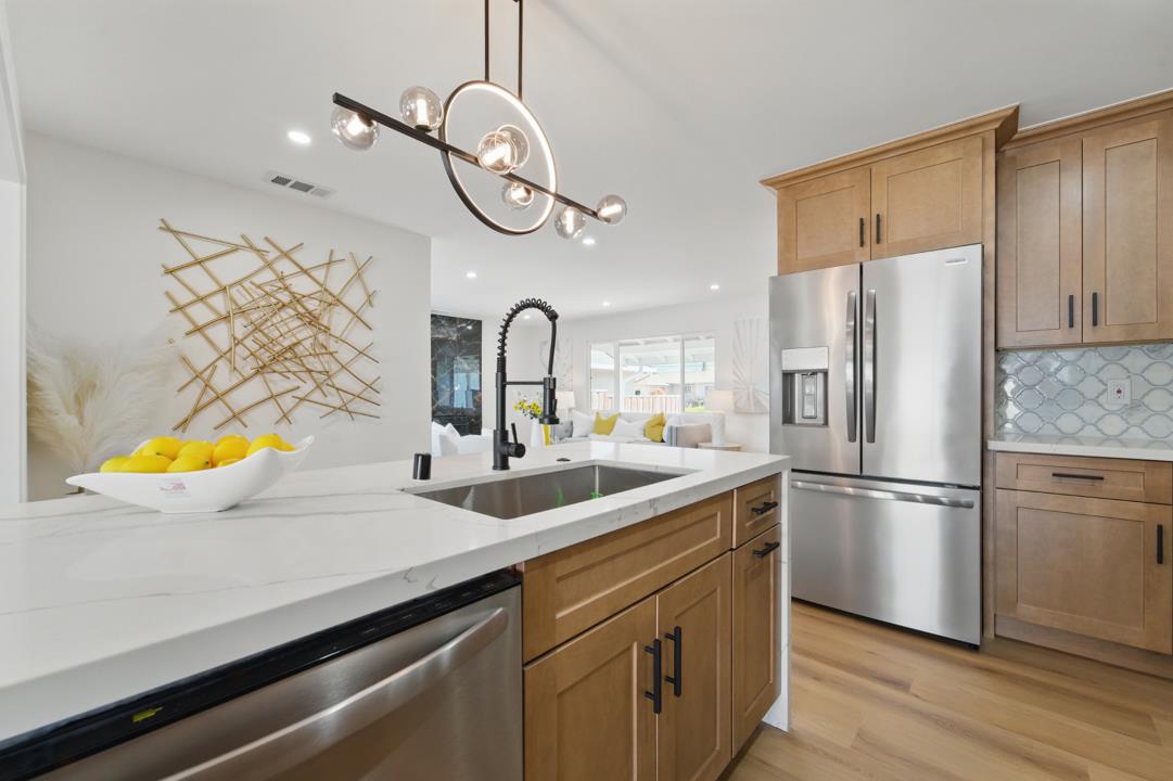 East facing, stunningly remodeled home with 3 bedrooms, 2 modern bathrooms, dining area, living room, and very spacious family room. The kitchen showcases a stylish quartz waterfall island, sleek modern cabinets, and brand-new stainless-steel appliances. The open floor plan is perfect for entertaining family and friends. Sliding glass doors seamlessly connect the interior with the outside space. This home offers a walk-in master closet, recessed lighting throughout, luxury vinyl floors, new doors, smooth sheetrock finishing, fresh interior and exterior paint, a brand new driveway, and new landscaping and plants. There is a very large shed in the backyard for all your storage needs. Unbeatable location with the neighborhood Starlite park just a few steps away, the elementary school is within a short walking distance, and Tesla Superchargers are available nearby for added convenience. Also located close to shopping centers, tech companies, and freeways (880, 680, and 237). As an added bonus, you will have access to great Milpitas schools. Do not miss the opportunity to own this beautifully updated home in a very convenient location!