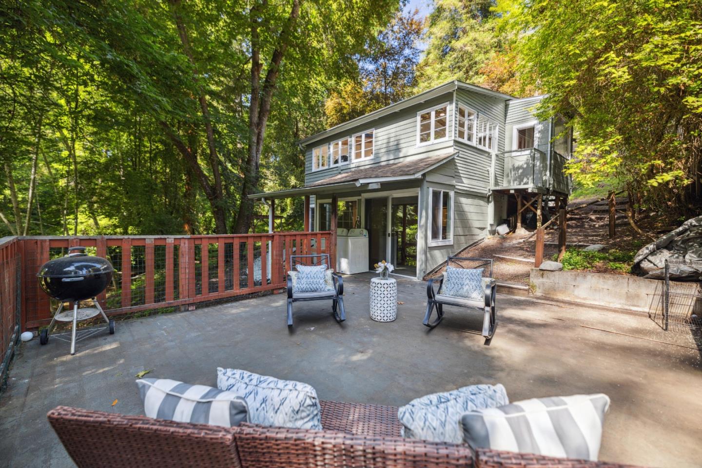 Set on just over a quarter acre of picturesque California land, this thoughtfully updated 1-bedroom, 1-bath home is more than a getaway it's a serene sanctuary along a tranquil creek. W/ charm, comfort, & convenience, it's the perfect escape from the daily grind. Fresh exterior paint & thoughtful upgrades enhance its character, & the flexible layout. On the main level, the inviting living room features a cozy fireplace, oversized windows, & a skylight that fills the space with natural light. The kitchen offers open shelving, ample counter space, and views that make everyday moments feel peaceful and connected to nature. A bonus flex space is perfect for a home office, art studio, or quiet retreat. Downstairs, you'll find an additional living area with a bedroom, full bath, & kitchenette ideal for extended family, guests, or potential rental income. This space adds both flexibility and value. Step outside to enjoy summer BBQs on the spacious patio or relax in the generous yard w/ room to garden, create, or simply soak in the sun all while enjoying the soothing sounds of the creek. W/ easy access to commuter routes, Santa Cruz beaches, & vibrant downtown favorites like Laili & Full Steam Dumpling, this rare creekside retreat offers the best of nature & neighborhood. Don't miss it!