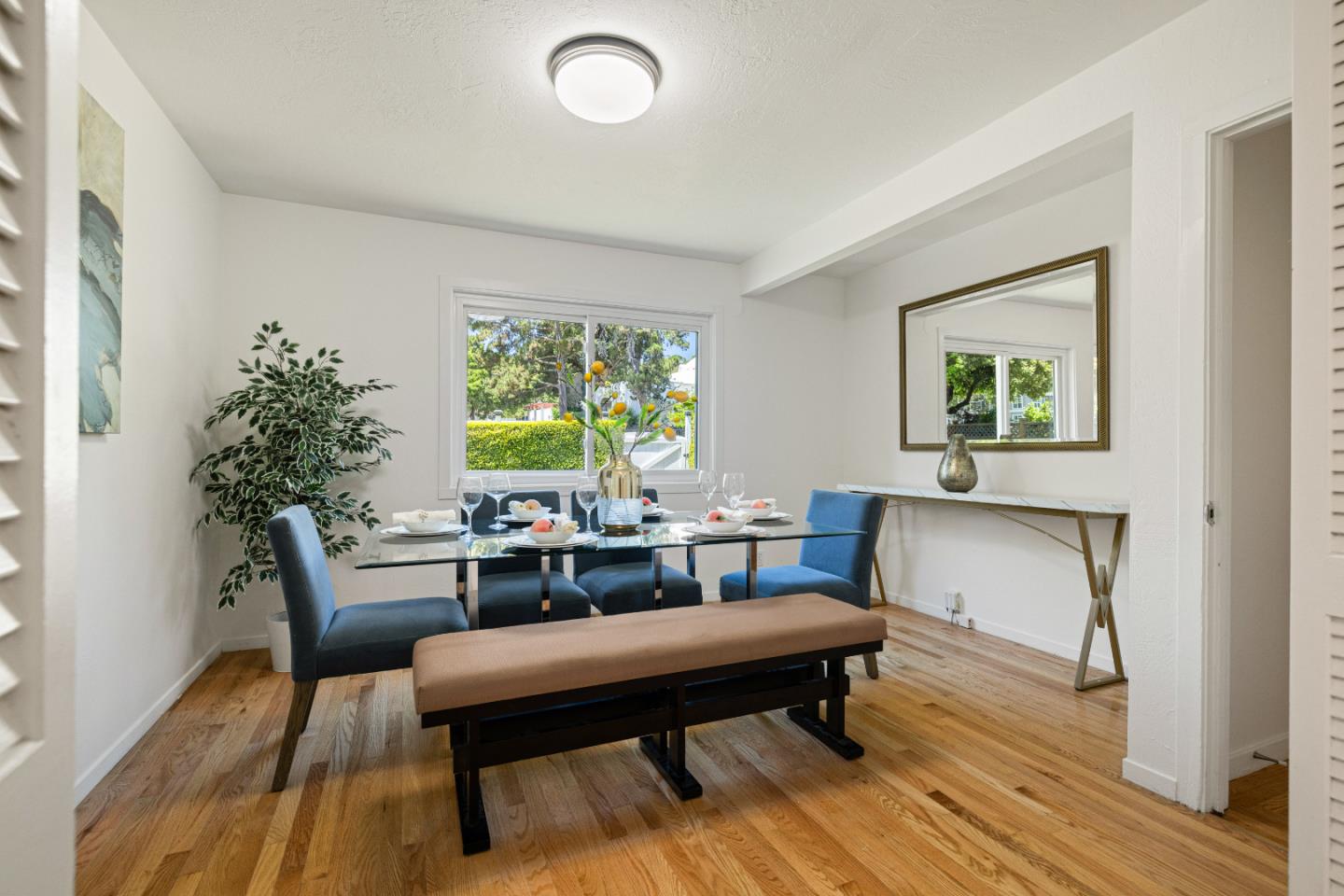 Welcome to this charming 3-bedroom, 2-bathroom home located in the desirable city of Belmont. This residence offers a comfortable living space of 1,254 sq ft on a 5,050 sq ft lot. The well-appointed kitchen features a 220-volt outlet, quartz-like countertops, a hood over the range, microwave, electric oven range, refrigerator, and garbage disposal, making it perfect for cooking enthusiasts. Inside, you'll find beautiful newly refinished hardwood flooring that complements the home's aesthetic. The dining room provides a great space for entertaining. Additional amenities include laundry facilities in the attached garage with a laundry tub, and washer/dryer. Central forced air gas heating and double pane windows ensures comfort throughout the year. The large fenced yard in back has a big patio plus a lawn area with automatic sprinklers. A separate fenced yard in front has a good sized lawn area with automatic sprinklers and a pleasant from porch. The house has a one-car attached garage. Don't miss the opportunity to own this lovely Belmont home.