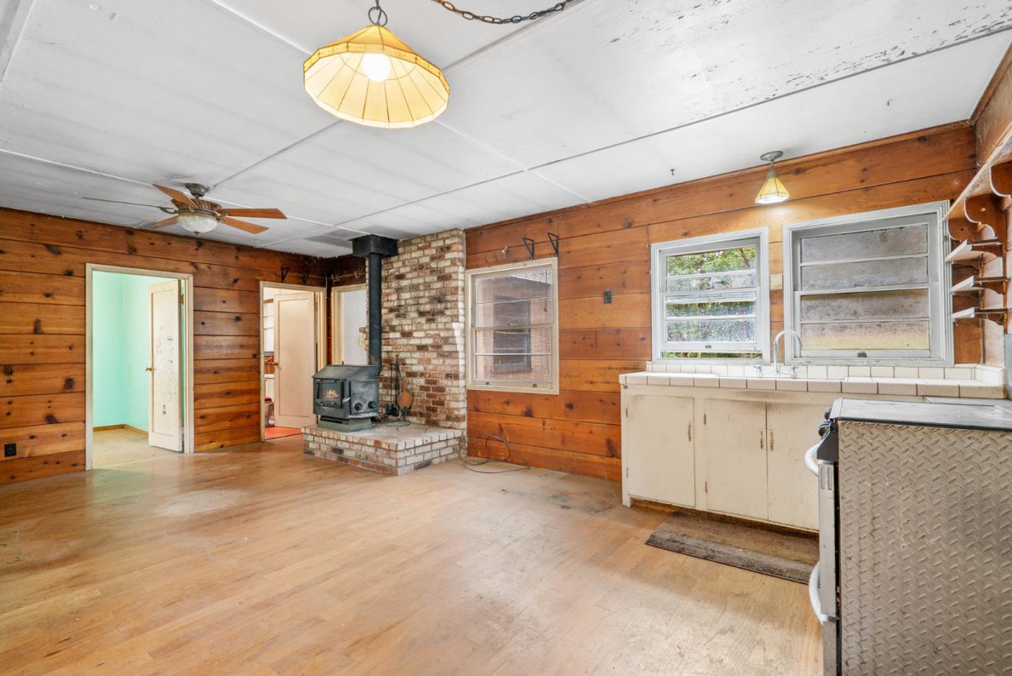 Located on the delectable corner of Ice Cream Grade & Candy Lane, this fixer is a sweet deal! Close to Bonny Doon School & a few hundred ft from Bonny Doon Ecologic Reserve, with EZ access to UCSC, North Coast beaches and all SC offers. Enjoy Bonny Doon living in this 2BR, 1BA home. Built in 1952 w/ a simple 736 ft plan, knotty pine walls in the K & LR areas complement the softwood floors in the BRs to give the whole house a warm and comfy feeling. The 2 parcels are flat and totally usable. The well is a gusher at 9.5 GPM, & the septic passed easily. The decks need work, likely the largest issue to resolve. The kitchen is original; build your dream without paying for someone else's, only to remove theirs to install YOUR perfect kitchen; a blank canvas! The exterior is stucco, a fire-resistant bonus. A carport & a small shop for projects and big toys. Boats and quads have all rested here between adventures. The 2 parcels of nearly 2 acres allow lots of garden and outdoor activity space. This area was not hit by the CZU fires; the flora looks like it has for decades! Enter the serene property via the flag lot to a full circular drive around a small reflecting/fish pond. This home definitely needs TLC, but may qualify for a conventional loan.