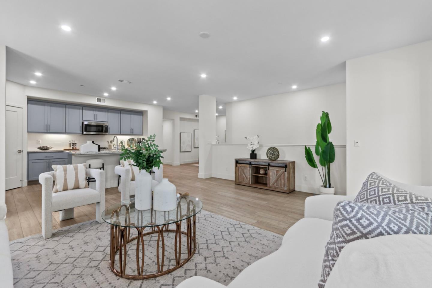 This charming 2-story end-unit townhouse-style 2020 built condo in Dublin's sought-after Boulevard community is meticulously designed with top-quality materials and upgrades, making it ideal for a growing family. Boasting 1,800 sq ft, the home features 3 bedrooms and 3 full baths, including a first-floor bedroom with an en-suite bath,perfect for guests or a home office. The entry impresses with soaring 2-story ceilings and modern flooring throughout. The open-concept second floor showcases a spacious living room and dining area, alongside an upgraded kitchen with quartz countertops, white shaker cabinets, gas range, stainless steel appliances, and soft-close cabinetry. The natural light-filled primary suite includes a walk-in closet with mirrored doors, double vanity, and a large walk-in shower. The living room takes full advantage of the corner unit's expansive views and abundant natural light. Additional highlights include a balcony for relaxing or entertaining, an attached 2-car tandem garage, and in-unit washer/dryer. Water filtration/softening system & reverse osmosis drinking water. Newer flooring & tiled bathrooms. Minutes from BART, top-rated schools, shopping, dining, parks, and Boulevard Rec Center amenities like a heated pool and workout areas.