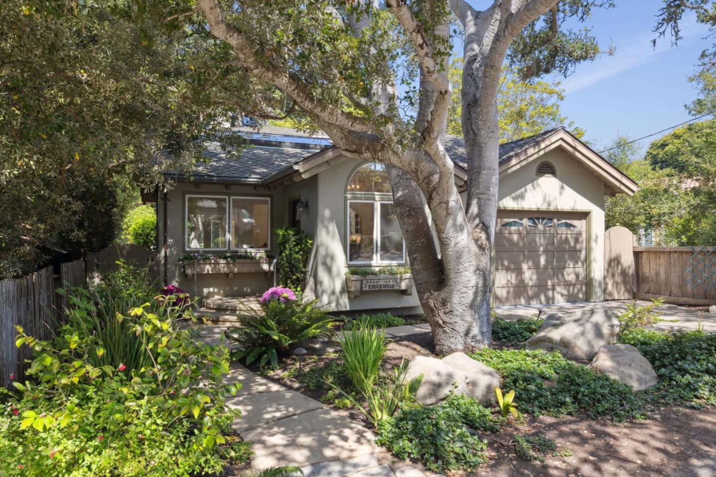 Step into Knockwood, a cherished retreat nestled behind a majestic oak tree in Carmel-by-the-Seas Golden Rectangle. Available for the first time in nearly 30 years, this home is a mere 400 steps from the white sands of Carmel Beach. Enter the living room with high ceilings and ridge skylights, which flood the space with natural light. The open concept design integrates the kitchen with dining and living areas, perfect for entertaining. The kitchen features new leathered Taj Mahal marble countertops, a sit-up bar, and a new sink, stove, and dishwasher. French doors lead to the southern deck, blending indoor elegance with outdoor coastal living. The main-level primary suite offers patio doors, a sitting area, a spacious walk-in closet, and an en-suite bathroom with a Jacuzzi tub, shower, and sauna. Upstairs, discover two bedrooms, one with a fireplace. Both open to a southwestern deck with views of the patio and a large cypress tree. Recent updates include refreshed solid oak floors, new carpeting, fresh interior paint, and a shimmering epoxy garage floor. Situated on the quiet side of the Golden Rectangle, "Knockwood" is perfectly positioned close to the beach and just a short stroll to town. An ideal primary residence or coastal getaway, this is your opportunity in Carmel.