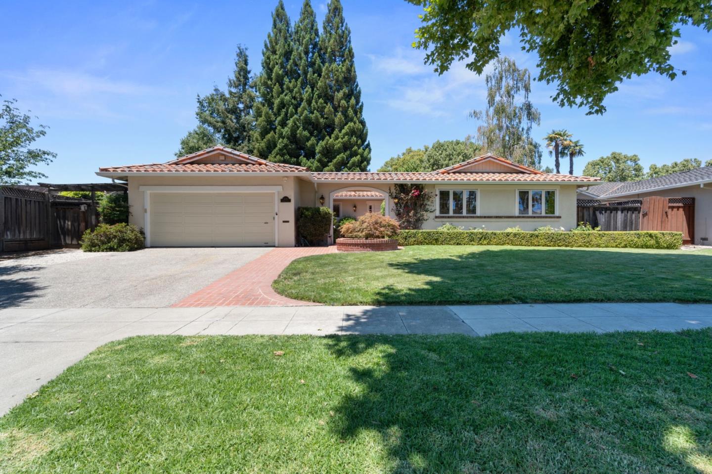 Welcome to 2336 Constitution Dr an inviting home in the heart of Willow Glen, zoned for sought-after Booksin Elementary. This expansive 4BD/2.5BA home offers 2,364 sq ft of living space on a generous 10,350 sq ft lot. Thoughtfully maintained and freshly painted, it features vaulted ceilings, hardwood floors (some under carpet), recessed lighting, and 2 wood-burning fireplaces. The updated kitchen includes granite counters, stainless steel appliances: DCS gas cooktop, Zephyr hood, KitchenAid wall oven and a sunny breakfast area that opens to a spacious family room with yard access. Formal living and dining rooms feature elegant touches like double-door entry, track lighting, and hardwood flooring deal for entertaining. The primary suite offers yard access, a large closet, walk-in shower, and modern fixtures. Secondary bedrooms include cedar-lined closets, built-ins, and custom blinds. The hall bath features double vanity, designer tile, and wainscoting; powder room and laundry area add convenience. Outside, the oversized lot offers a sparkling pool, mature landscaping, and ample space to relax, entertain, or garden. The 2-car garage includes storage, a workbench, and a Randazzo water softener. Easy access to 85, 87, 280, 17, the Pruneyard, Whole Foods, and local restaurants.