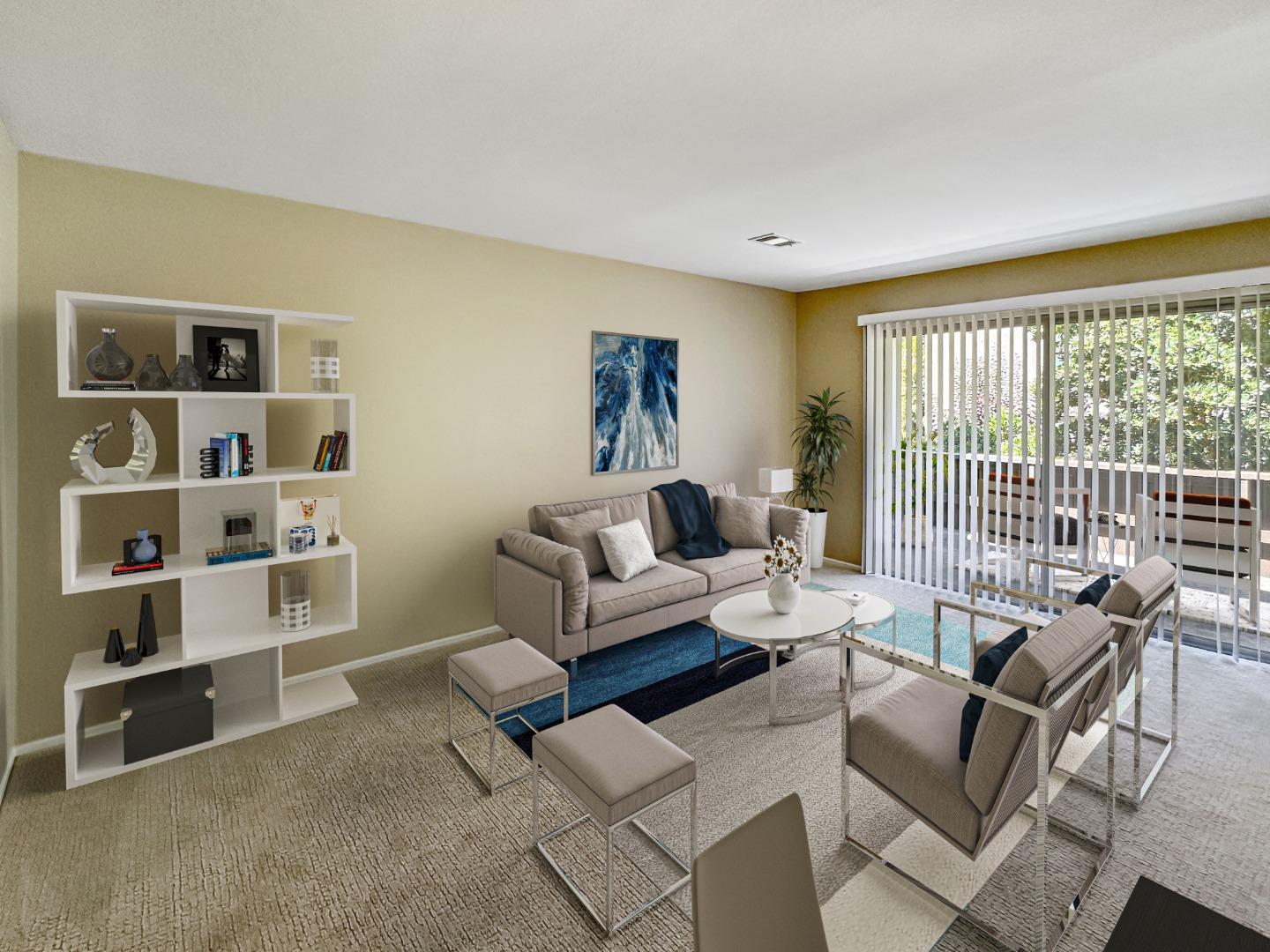 Welcome to 317 Pope Street, a charming one-bedroom, one-bath condo in the heart of Palo Alto. This well-maintained unit offers a comfortable and convenient lifestyle with proximity to local amenities. The spacious living room, filled with natural light, features fresh new carpet that extends throughout. The open layout connects the living area to the dining space, creating an inviting atmosphere. The well-appointed kitchen boasts modern appliances and ample cabinet space. The generously sized bedroom offers plenty of room for comfort. The sleek bathroom features contemporary fixtures and finishes. Enjoy your morning coffee or evening glass of wine on the private deck with serene views. This condo includes a one car carport and additional storage. As an owned unit in a well-maintained complex, you'll benefit from shared amenities like the community washer and dryer. The prime location offers easy access to shops, restaurants, parks, and public transportation. Don't miss the opportunity to make 317 Pope Street your new home. Schedule a viewing today and discover the perfect blend of comfort, style, and location. This home has been virtually staged and requires minimum 680 FICO score and 2.5x the monthly rent as gross income to qualify. No pets (except service animals).