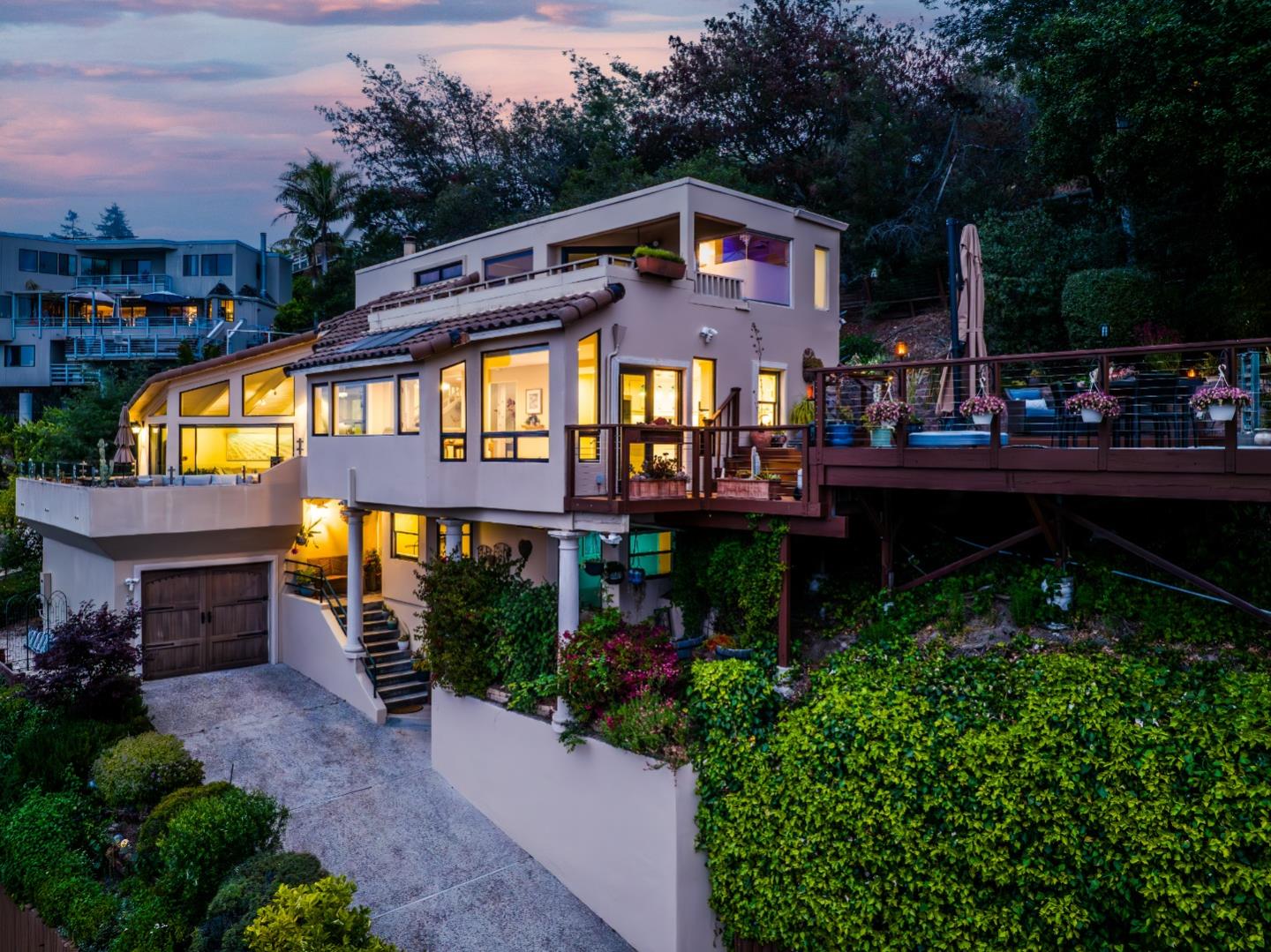 Big Views from this Soquel Home! Panoramic ocean, mountain, and Soquel area views from nearly every room. This contemporary Mediterranean-style home was thoughtfully designed to maximize natural light and views. The primary suite includes a walk-in closet, private balcony, and a shower with some of the best views in the house. Fantastic living room with vaulted ceilings, a wall of windows, built-ins, and a fireplace. The kitchen has granite countertops with a leather finish, an island, and a window over the sink. The dining room is one of my favorite areas in the home, imagine having a dinner party and looking out over the mountains and ocean. Throughout the home, you will find unique touches like custom light fixtures and detailed light switch covers. Air conditioning adds comfort year-round. Multiple outdoor areas offer space to relax or entertain, there are 3 decks and a terraced garden area, all with incredible views. The finished garage works well as a workshop, gym, or art studio, plus there is an extra storage room with a wine cellar. A rare Soquel property with some of the best views in town and located just minutes to local favorites like Home Restaurant, Tortilla Flats, and Beer 30.