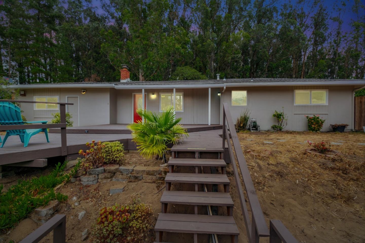 Welcome to this peaceful and private hillside home, freshly updated with a newly painted exterior and thoughtful interior improvements. (too many to mention, ask listing agent for the list) This charming 3-bedroom, 2-bathroom residence offers comfort, character, and the perfect setting to unwind. Also included, is a studio space which can be used as an office or an additional bedroom. Has its own bathroom and laundry hookups. Perched on a spacious half-acre lot at the top of a tranquil hill, you'll enjoy tree-lined surroundings and a refreshing ocean breeze just beyond the ridge. A generous deck provides a space to relax. With ample space for an RV, potential ADU, or a custom outdoor living area, this property offers flexibility for a variety of lifestyles. Whether you're seeking a peaceful retreat, a creative space, or simply a place to call your own, this hillside gem is ready to welcome you. Three (3) exterior facilities are included, that can be used for workshop or storage.