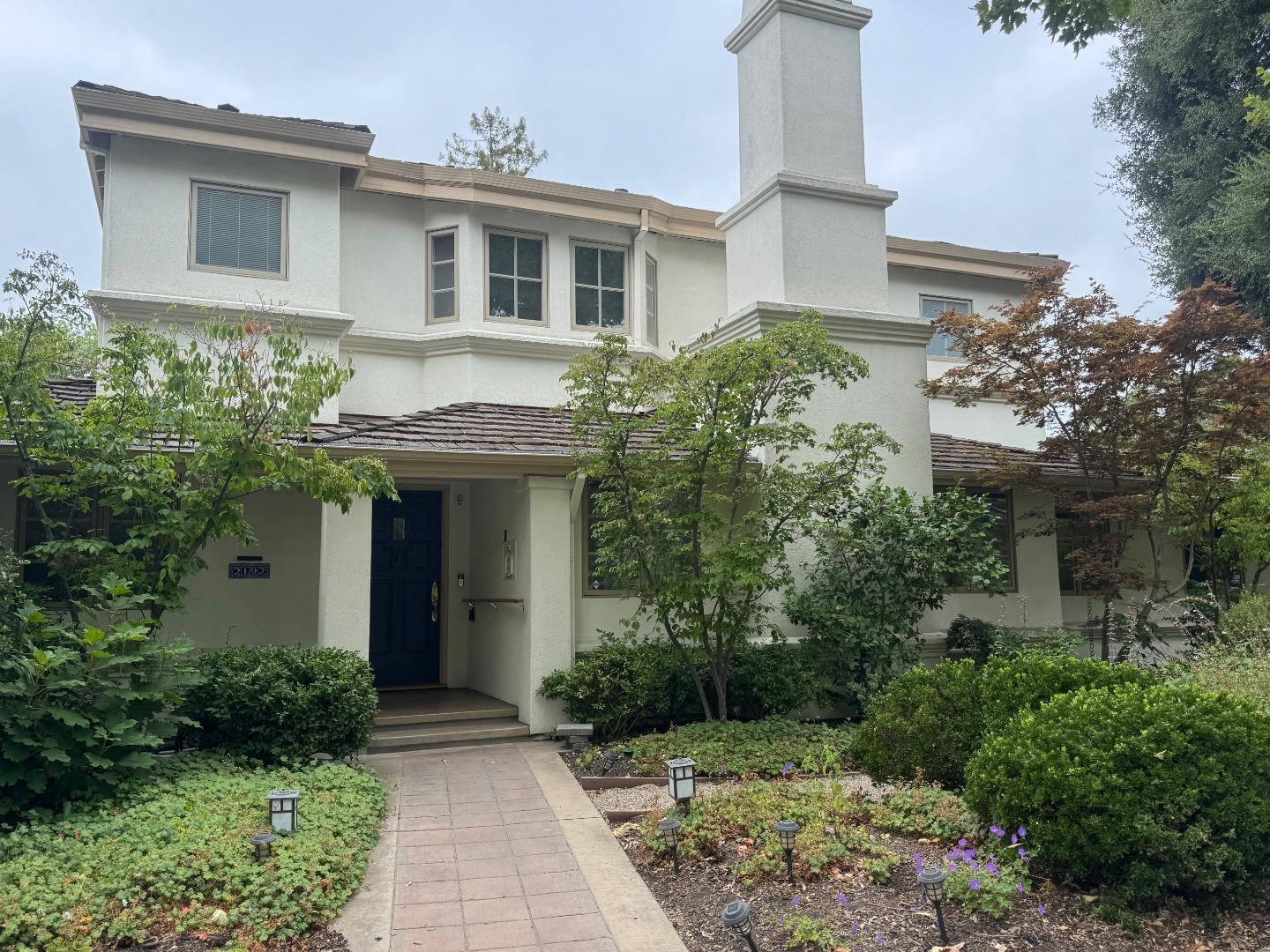 Traditional gem nestled in the heart of prestigious Old Palo Alto. This enchanting 4-bedroom, 3.5-bath residence is a portrait of classic elegance and comfort, offering an idyllic lifestyle on a private corner lot. Spacious 2,669 sf home with 2 outdoor relaxation/entertaining spaces. The main level has a formal Living Room, with hardwood floors and fireplace, which connects to the Family Room overlooking the serene back yard. The Large formal Dining Room, with French doors to a landscaped patio, is adjacent to the Kitchen which includes solid-surface countertops, 5-burner gas cooktop, double ovens, dishwasher, ample storage. Large laundry area with washer and dryer and storage cabinets. The main level has an ensuite bedroom, a half bath, and a street-facing bedroom outfitted as an office. Upstairs has A/C and two bedrooms, both ensuites.