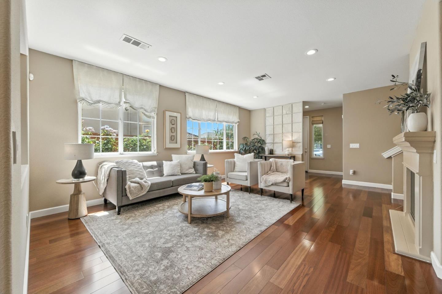 Welcome to your dream home in one of Morgan Hills most sought-after neighborhoods! This stunning residence blends comfort, elegance, and sustainability, featuring soaring 10-foot ceilings and rich engineered hardwood floors that create an airy and inviting ambiance throughout. The gourmet kitchen is a chef's dream, boasting a premium Thermador oven, under-cabinet lighting, a modern water filtration system, and a large granite kitchen island perfect for meal prep, casual dining, or entertaining. Owned solar panels provide energy efficiency, while a brand-new air conditioning/ heat pump unit ensures year-round comfort. Step into the expansive primary suite, your personal retreat, complete with a spa-like soaking tub, separate walk-in shower, and generous closet space. Outside, enjoy the peaceful serenity of your private backyard oasis. A charming pergola draped with mature olive trees and grapevines sets the scene for al fresco dining, surrounded by vibrant rose bushes. Tucked away on a quiet, tree-lined street, this home offers tranquility without sacrificing the 10-minute walk to downtown Morgan Hill restaurants and amenities.