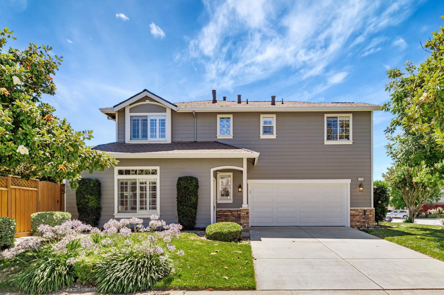 Welcome to 17715 Calle Hermosa...where comfort, style, and convenience meet in one of Morgan Hills most sought-after communities. Step inside to an open-concept layout filled with natural light, plank tile flooring, and a cozy gas fireplace. The chef-inspired kitchen is a standout, featuring granite countertops, a gas range, and eye-catching two-tone cabinetry...ideal for both everyday cooking and entertaining. Upstairs, enjoy brand-new carpet, a convenient laundry area, and a serene primary suite with ample closet space and a bright bathroom featuring a soaking tub. The attached two car garage provides plenty of space for parking and storage. Just outside your door, relax at the community pool or explore the vibrant downtown just minutes away, with its charming shops, local dining, coffee spots, and nearby parks. This is Morgan Hill living at its best, welcome home!