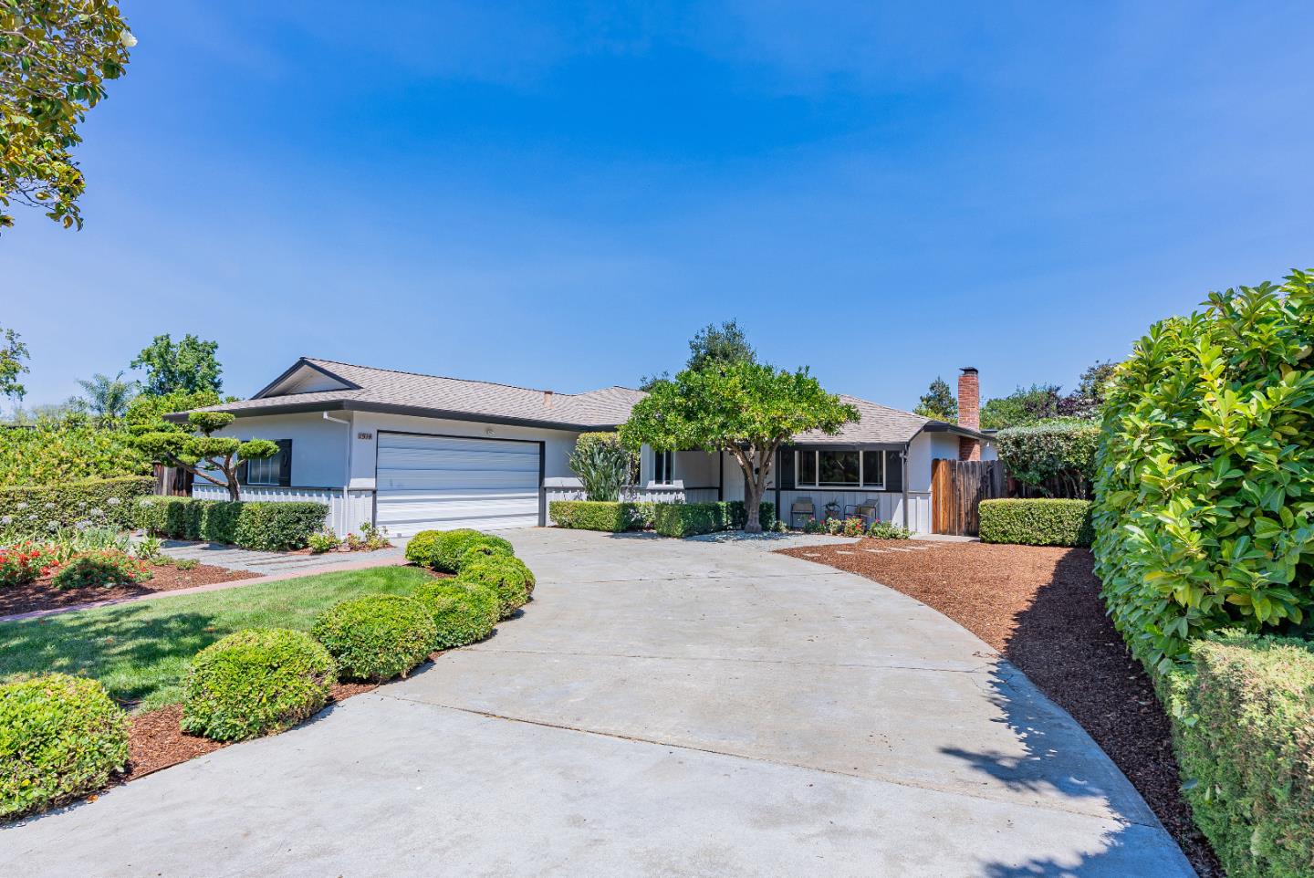 Perfectly situated in a peaceful neighborhood on the border of Cupertino and Los Altos, this newly updated gem is just a short stroll to Top-Rated Cupertino schools, De Anza and Homestead Crossing Shopping Center and moments from parks and trails. Rich hardwood floors lead into a bright, sun-filled living room with recessed lighting, dual-pane windows and cozy fireplace. Folding louvered doors open past the dining room into the kitchen/family room combo, complete with an additional dining area. The kitchen showcases high-end stainless steel appliances, granite countertops, vast cabinetry and a skylight. All bedrooms are spacious with their own closets, while the primary suite offers dual closets, newly updated en-suite bathroom and bonus office/den. Additional highlights include a two-car garage with washer, dryer and sink, plus a beautifully landscaped backyard with a pergola with built-in seating, planter boxes and an impressive variety of fruit trees, orange, persimmon, fig and guava. In spring, a pavilion draped in blooming wisteria adds charm, while a shed provides convenience. Ideally located near top Silicon Valley tech hubs, Apple, Google and Meta, with easy access to highways 85, 280 and Caltrain. Do not miss your chance to own this ideally located gem. It will go FAST!