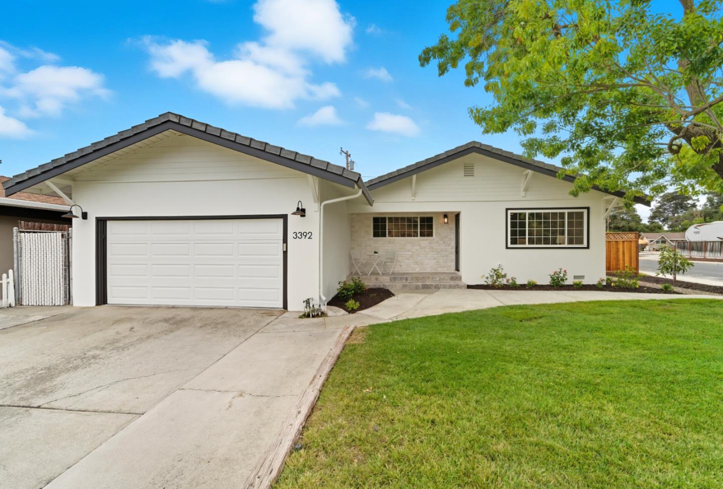 Step into luxury and comfort with this fully renovated contemporary design home in the most desirable neighborhood of Santa Clara with Award-Winning Cupertino Schools. Whether you're a tech professional, growing family, or savvy investor, this turnkey home offers luxury living with modern finishes and unbeatable convenience. Featuring spacious 3 bedrooms, 2 baths, open concept layout with separate family and living rooms, built-in electric floor to wall tiled fireplace, updated electrical and plumbing with copper pipping, central A/C and heat, wide planked Engineering hardwood floors, custom European-style kitchen cabinetry with stainless steel appliances, quartz countertops with waterfall effect, level 5 wall finish, new interior doors, new double pane windows and sliding door, and so much more! Spacious backyard with matured fruit trees and side access for boat/RV parking. East/West facing, corner lot with tons of natural light. Minutes from Apple, Nvidia, Google, Levi Stadium, and Santa Clara University. A commuter's dream!