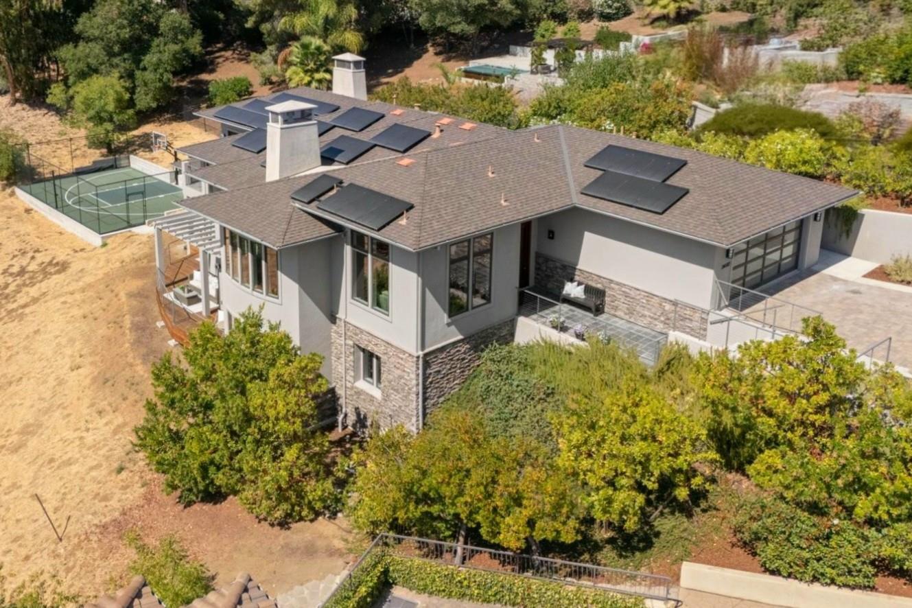 Striking residence built in 2011 offers modern design, volume & endless VIEWS! Tucked within an enclave of exclusive homes on a quiet cul-de-sac, this home delivers privacy & tranquility on 0.81+/- acres, yet is only moments from the vibrant heart of downtown Los Altos. Spacious interiors are defined by soaring 12' ceilings, clean architectural lines & sweeping views of the surrounding hills from almost every room in the home. Generous living areas provide the ideal backdrop for entertaining & everyday living, with open flow between the living, dining, kitchen & family room spaces. Tremendous chef's kitchen with expansive center island boasts top-of-the-line appliances. The serene bedroom retreats are oriented to maximize privacy while still capturing picturesque hillside vistas. Spacious 2nd family room offers the perfect setting for casual gatherings, movie nights or a dedicated play space. Multiple sliding glass doors seamlessly connect the interiors to the wrap-around deck & outdoor setting. Sports court provides year round recreation space for pickleball & basketball. Additional amenities include: solar panels, automated window shades, water softener, dual EV outlets & finished 2-car attached garage w/large driveway offering ample guest parking. Acclaimed Los Altos schools.