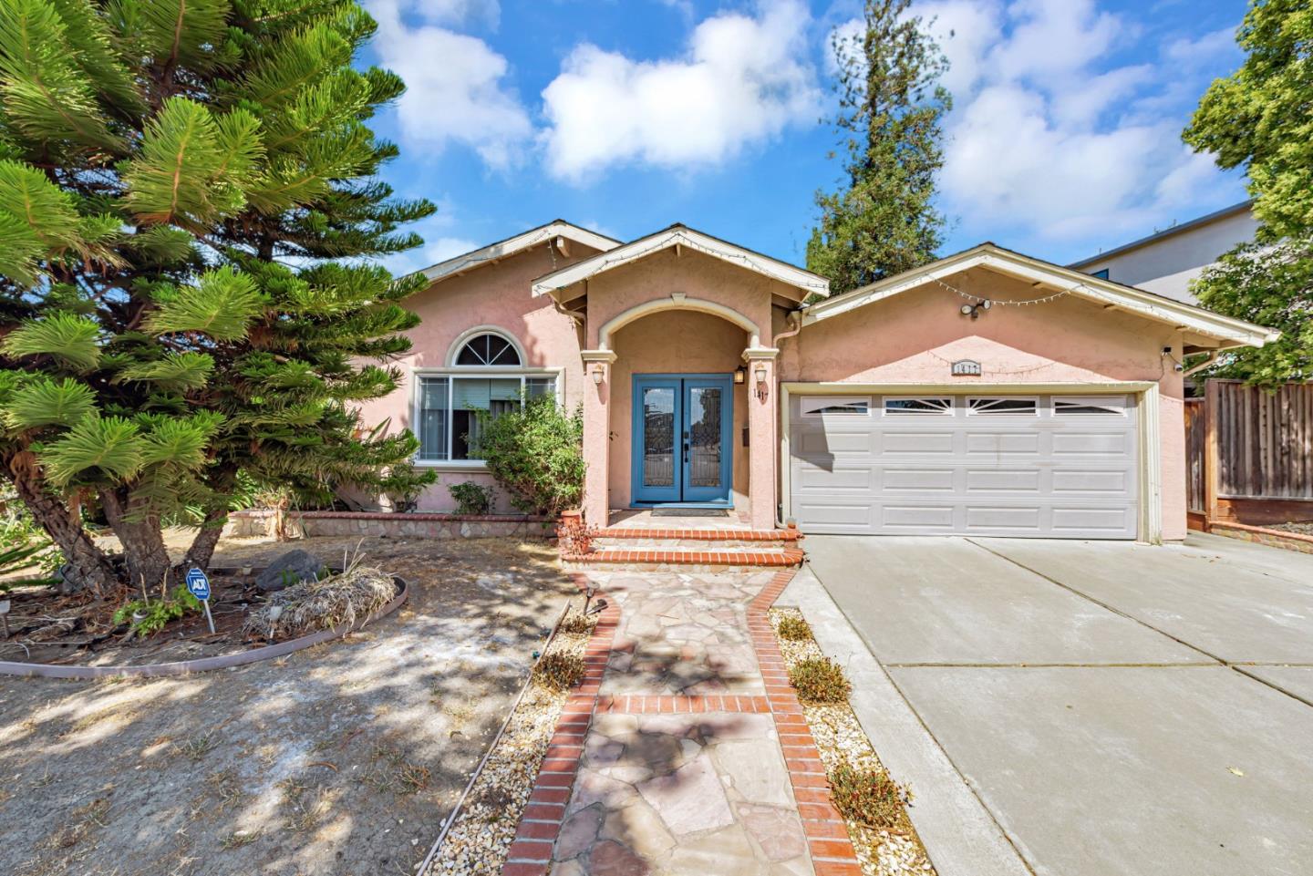Light fills this 3-bedroom, 2.5-bath home, where cathedral ceilings and an airy design create an immediate sense of welcome. The spacious living area makes a strong first impression with its bright, open feel, crown molding, and hardwood floors. A ground-floor primary suite provides both comfort and convenience, while the overall layout ensures a perfect balance of relaxation and functionality. Flowing into the heart of the home, the expansive kitchen is finished with warm cabinetry, spacious counters, double ovens, and a large island ready for cooking or casual meals. It opens easily to a generous family room and dining nook, giving you the space to gather or simply enjoy everyday moments. Two additional bedrooms share a full bath, offering flexibility for family, guests, or a home office. The primary ensuite is thoughtfully updated with dual vanities and a sleek walk-in shower. Beyond the walls, a peaceful backyard awaits with fruit trees, pavers, and room for entertaining or quiet afternoons outdoors. Living here means enjoying the calm of a quiet, established neighborhood while staying close to shopping, transit, and major routes. Families will appreciate access to highly regarded Noble Elementary, Sierramont Middle, and Piedmont Hills High, all known for strong academics.