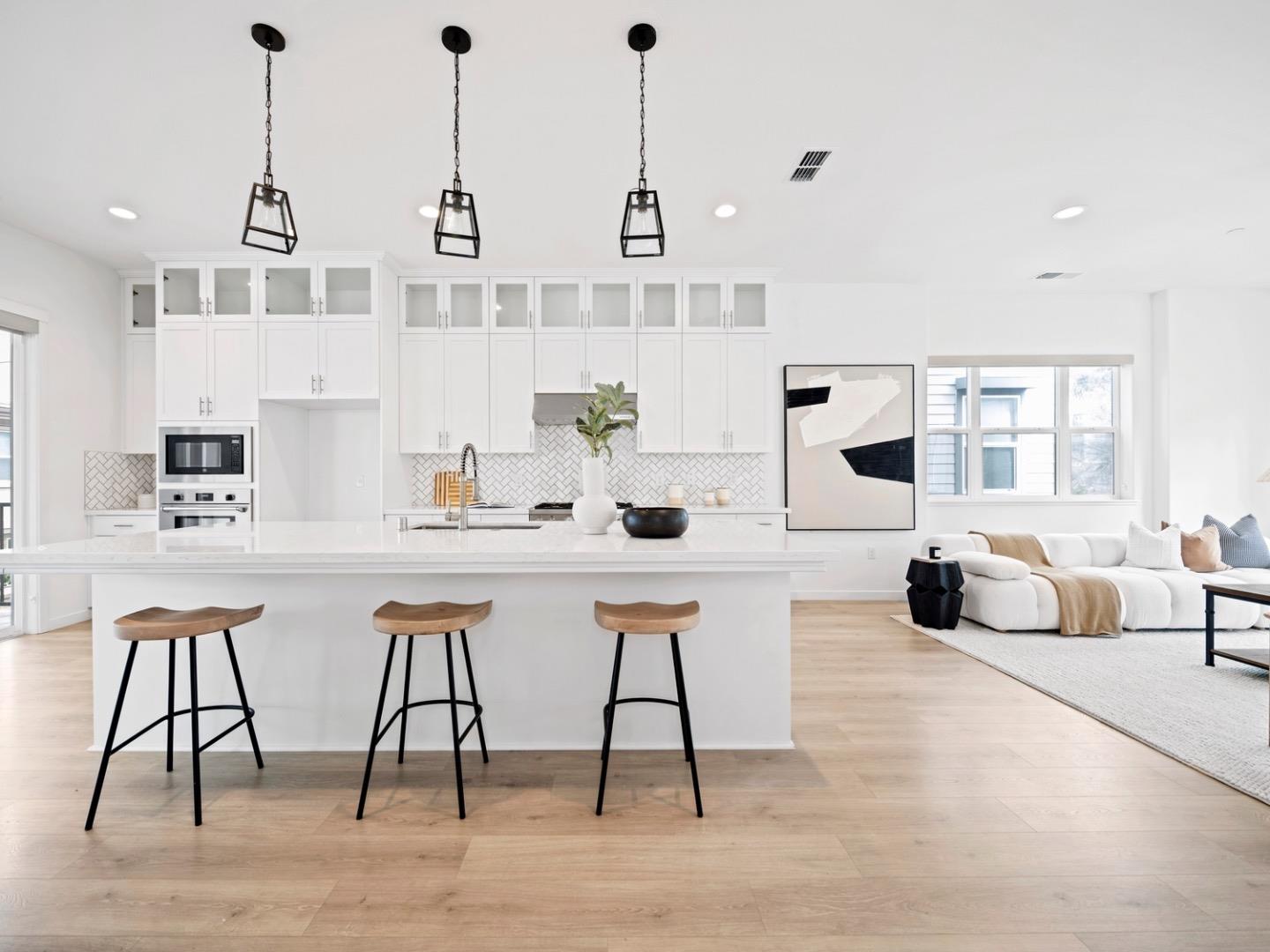 Built in 2019, this beautifully appointed 4-bedroom, 3.5-bath single-family home in one of San Joses most sought-after newer communities contains of $77K upgrades. Thoughtfully designed for flexibility, the home features a private ground-level bedroom and full bath ideal for multi-generational living, guests, or a dedicated office. The open-concept main level is anchored by a chef-inspired kitchen with premium European appliances, quartz countertops, sleek cabinetry, and an oversized island perfect for entertaining. High ceilings and expansive windows fill the space with natural light, creating a bright and welcoming atmosphere. Upstairs, the spacious primary suite offers a walk-in closet and spa-like bath with dual vanities, a soaking tub, and separate shower. Well-proportioned secondary bedrooms provide comfort and privacy. Enjoy indoor-outdoor living with a paved side yard and landscapes. Additional features include owned solar panels, EV charging capability, energy-efficient systems, generous storage, and a finished two-car garage. Residents enjoy access to resort-style amenities including a clubhouse, playground, walking paths, garden areas, and BBQ spaces. Ideally located near major commuter routes, shopping, dining, and everyday conveniences in the heart of Silicon Valley.