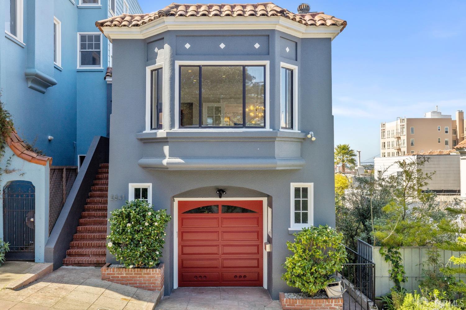 Iconic views of the San Francisco Bay from living and dining room, and Golden Gate Bridge from the master suite. Excellent location on the north facing slope of Russian Hill just minutes to shopping, fine dining and Ghirardelli Square. Approximately 2,630 square feet of total living space on two levels with 4 bedrooms, 2 full bathrooms and 1 half-bath. Living room with fireplace and Bay views. Formal dining room with sweeping views. Newly appointed gourmet kitchen with new composite granite Calacatta counter tops and top-quality appliances. Master bedroom suite with Golden Gate Bridge views. Family bedroom with views and a large closet. Half-bath servicing the main level. Lower level includes a recreation room, dedicated office, two bedrooms and a full hallway bathroom. Stunning rear sanctuary garden with deck and hot tub spa. Attached 1-car garage with storage and front-loading washer and dryer. Close to The Presidio, Ghirardelli Square, Crissy Field, marina yacht clubs, Marina Green, Fort Mason and the Russian Hill Park green space just up the Larkin Street Stairs.