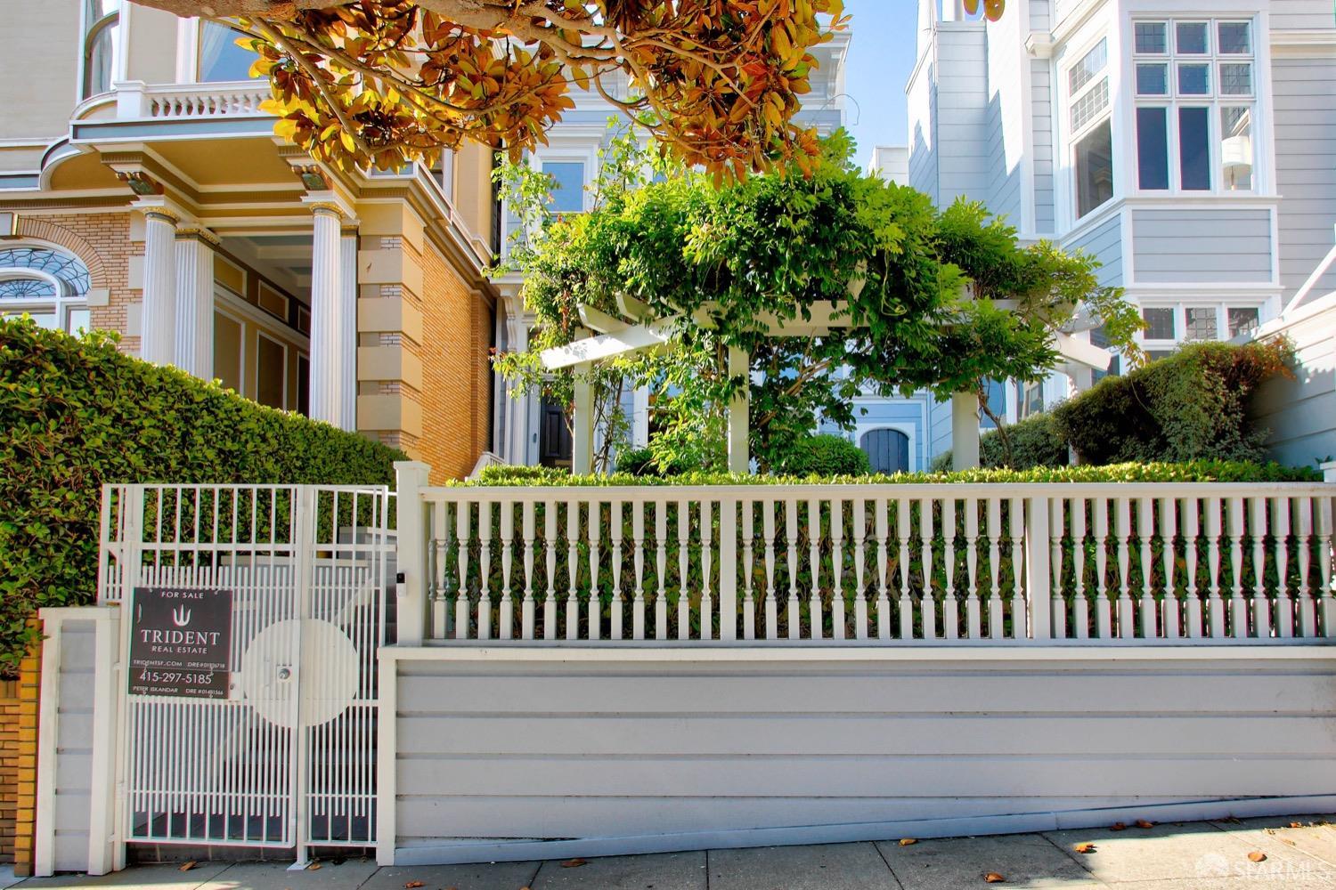 This charming Pacific Heights single family home is a true classic, situated on Jackson Street and detached on three sides. It features a serene courtyard patio and a sunny entry garden, perfect for relaxation. The house comprises three bedrooms, two and a half bathrooms, and generously proportioned living spaces that seamlessly connect to outdoor areas. The freestanding garage with skylights, accessed from Bromley, provides convenient parking and opens directly onto the courtyard garden. Recently renovated, the house boasts elegant rooms with soaring ceilings, numerous custom built-ins, and requires minimal stairs to access the living areas. This coveted location in one of San Francisco's most desirable neighborhoods puts you just steps away from boutiques, restaurants, cafes, and parks in Pacific Heights and Upper Fillmore.